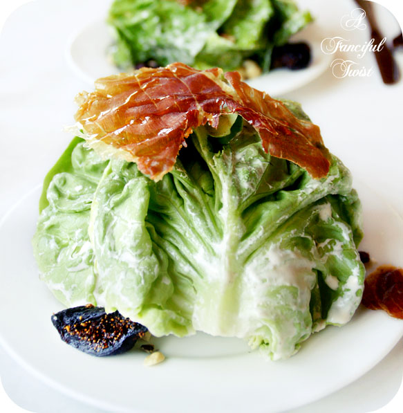 Salad with taste bud bursting flavors. Figs, prosciutto, hazelnuts…