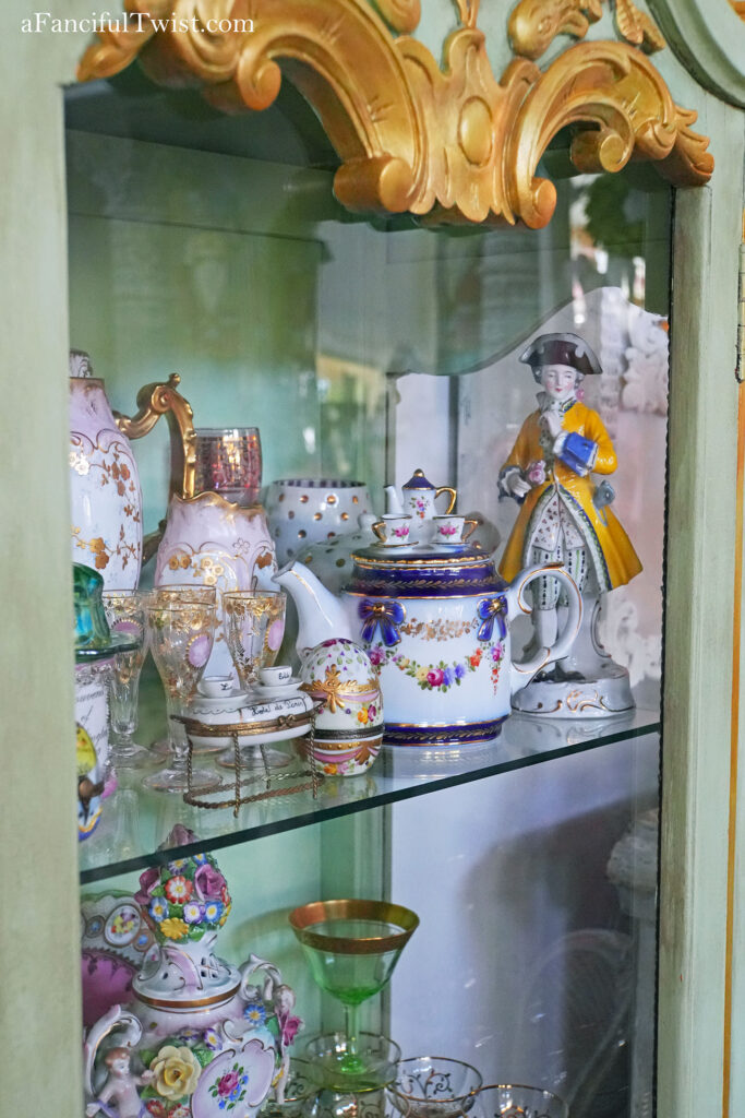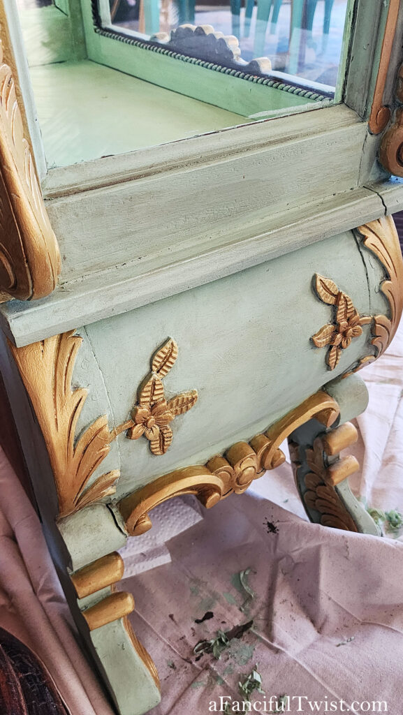 Her life began as the fanciful whimsical green gilded cabinet of dreams (not everyone’s dreams, but we can appreciate her even if she is not one’s own dream).