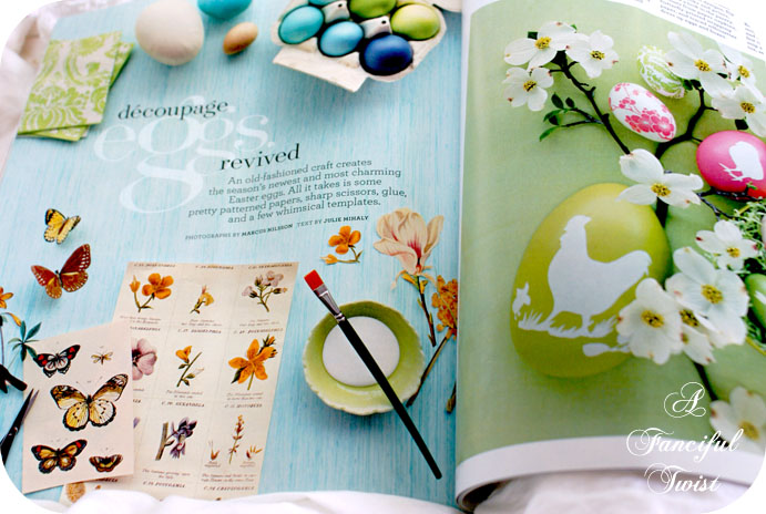 My goodness, all kinds of goodness in this post! I just got my copy of Country living, haven’t even opened it. I will be tomorrow! Now I want to make some eggs with paper cuts to hang from my chandelier for Easter!