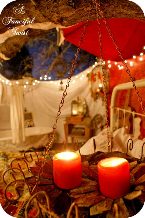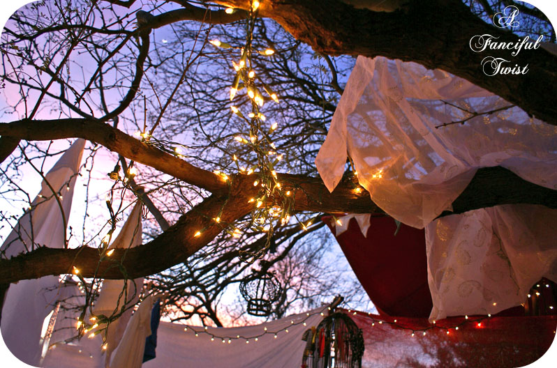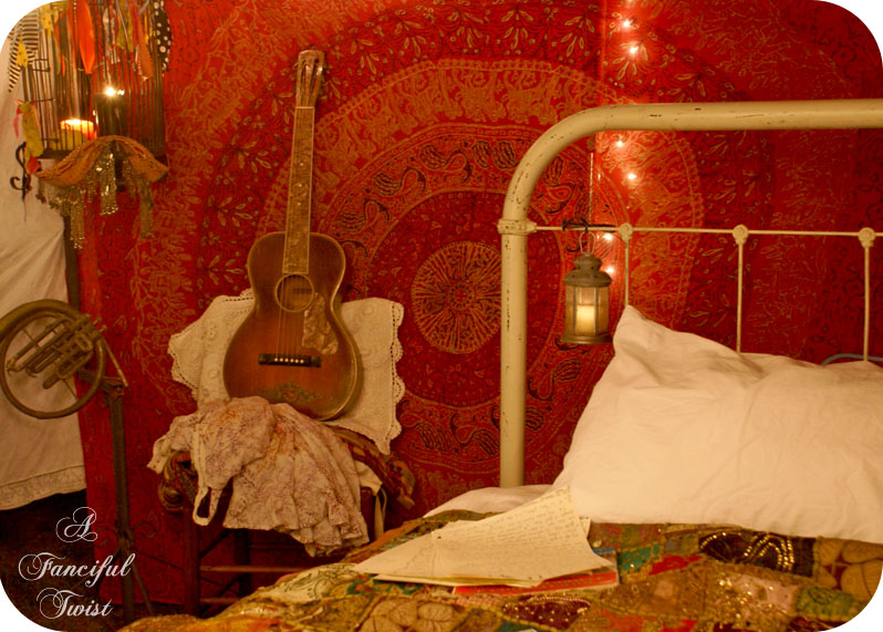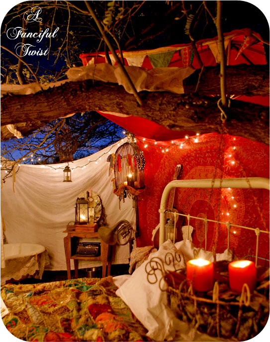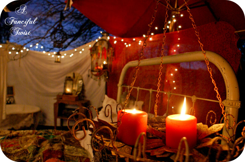 So you see, the recipe for magic, is simple. Your imagintaion, a few white lights, and a penchant for finding the greatest adventure right in your garden, inside the house (a gypsy tent can be inside to ya know), or in your apartment. Over your bed. In a corner of your home. The magic is yours for the taking...