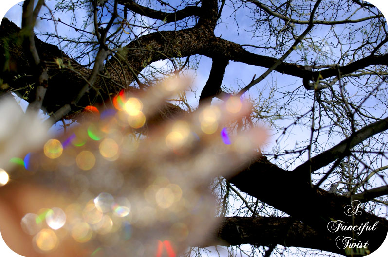 …yesterday late in the evening the sun shone through a little gap into my bedroom and bounced off the chandalier scattering rainbows all around the room…hundreds of them…and I knew that there was magic about…