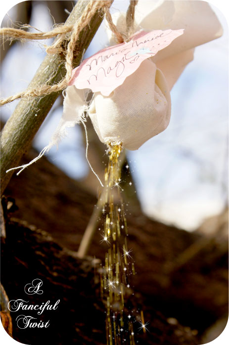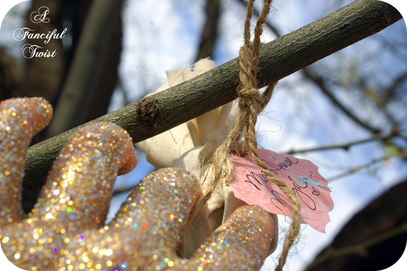 A little parcel filled with magic, is what she conjures up. Hanging from a tree, it waits for the sparkles to wiggle around and find their way out, setting the magic free…