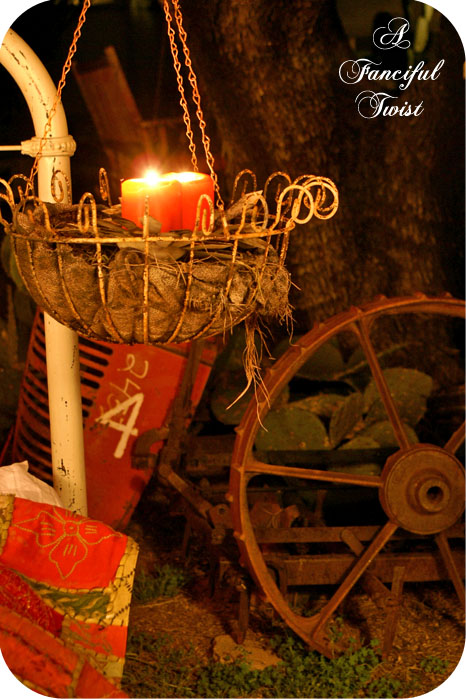 This is what the Gypsy Garden is to me… A place to be. Full of things I love. Textiles, an antique quilt made from antique Indian sari's, a bed made from a giant industrial refrigerator door and vintage milk crates. White lights, lanterns, candles… All things that were tattered or broken. All things that were mostly found or thriftventured. But all things we already owned…