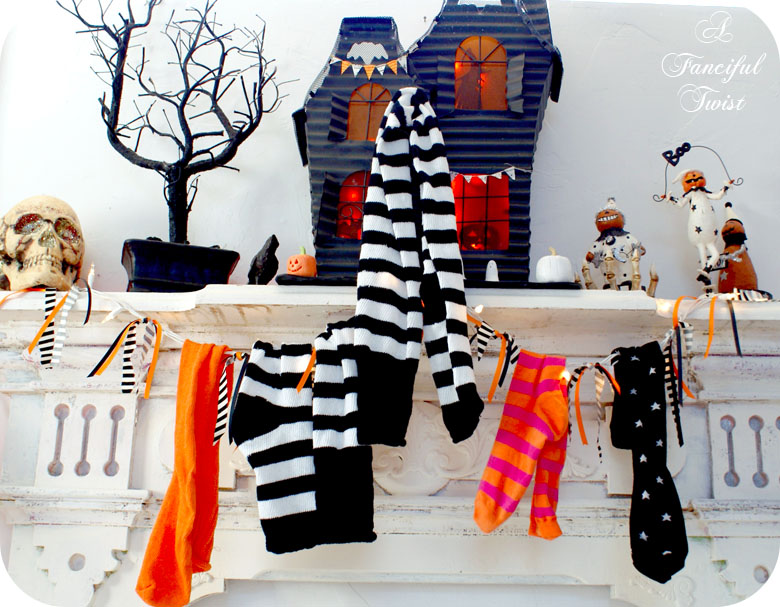 Wait til you see who is here to visit already! Let me just say, I got home to these hanging on the mantle. Which means, yes, the witches have arrived… Yipppeeee! (or maybe it is just a beloved order from Sock Dreams!! Those striped socks are sooooooooo long, too fun!! hee heeeee)