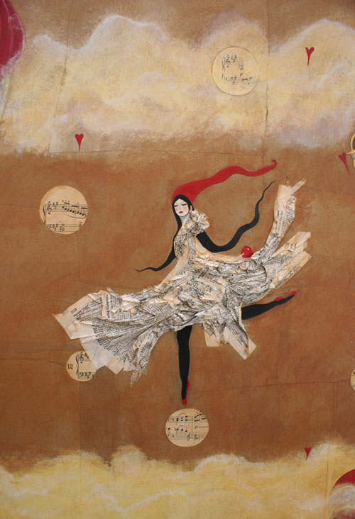 I have this vision that the first mime painting I did, "The Rescuing of the Mime," may have been their mother, as a girl… Being rescued by the hot air balloons… She had lived a whole adventure, in her own right. And now, the story changes, years later, as there are now two daughters who must continue with the show. I think the mime’s are also expected to do "audience gasping" tricks. A tad forlorn, they are…