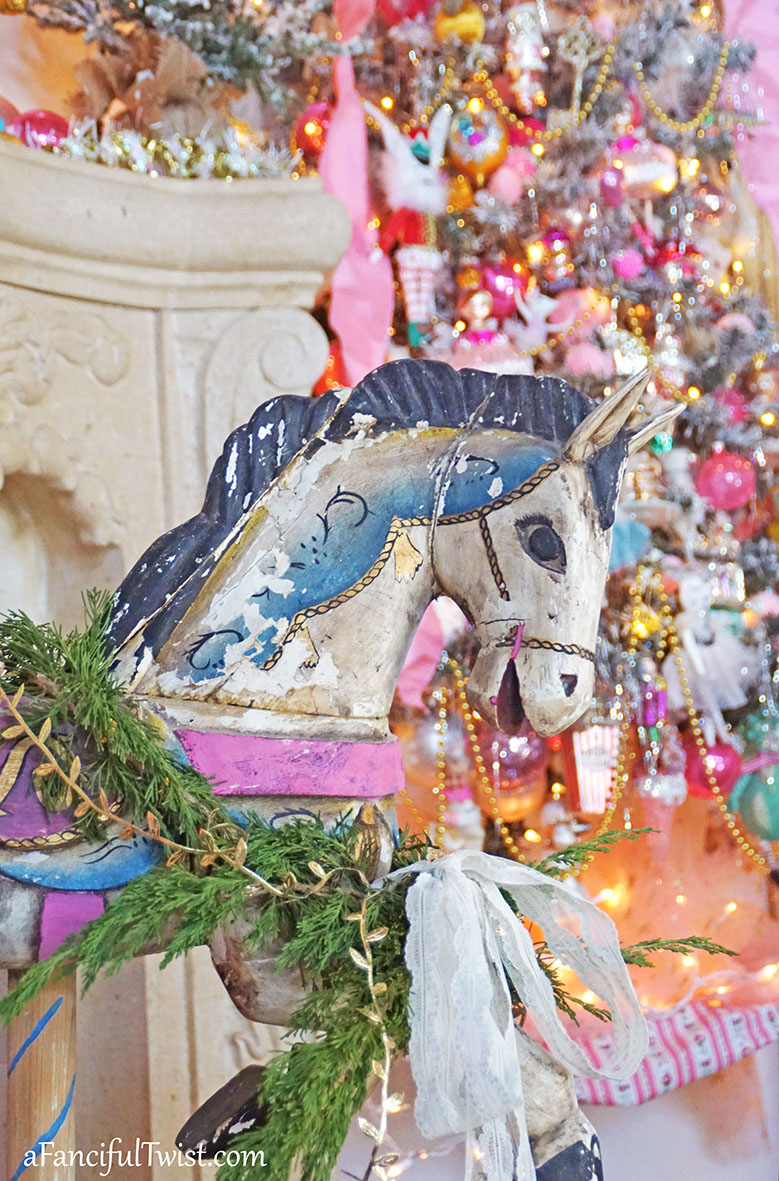 My favorite lace ribbon I keep hidden in my sewing nook at the country house is on the carousel horse.