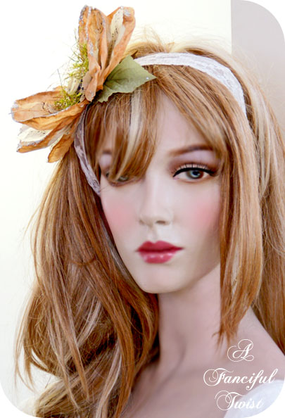 The wrist corsages are gorgeous. It’s hard to decide which I like better — the rhinestone & velvet-green one -OR- the coral cameo style? The idea of wearing one as a headband is a great idea and I bet the lace really accentuates your hair!