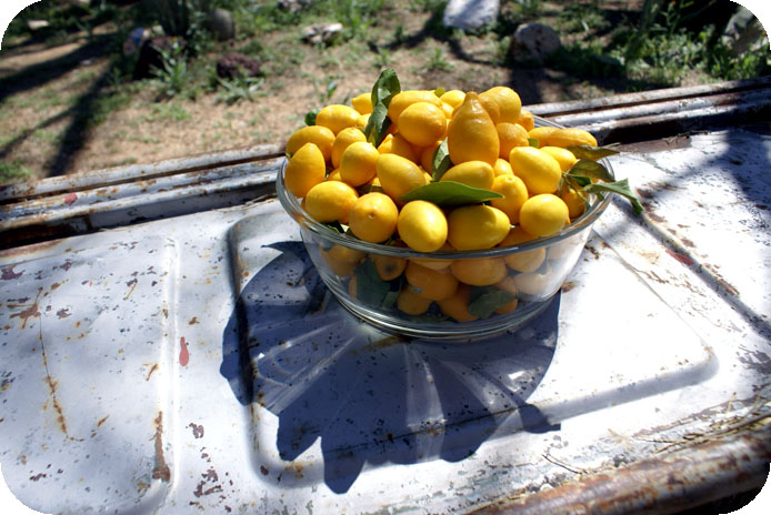 It was in the 80’s here all week. I collected fruit from my garden, and a friend gave me some other treasured limequats. I washed them in the garden, getting ready to make marmalade.