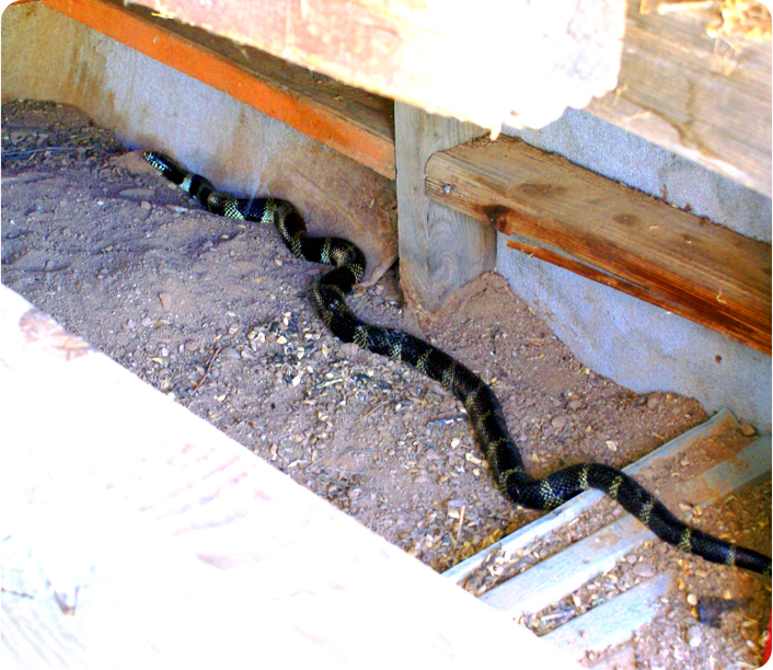 Either a king snake or a bull snake. They eat rattlesnakes and other rodents, scorpians…so they are your friend. We had one living on our property for a few weeks last fall…but I didn’t enjoy it, cause I HATE SNAKES! Even now I walk out any door and look to make sure none are in view.