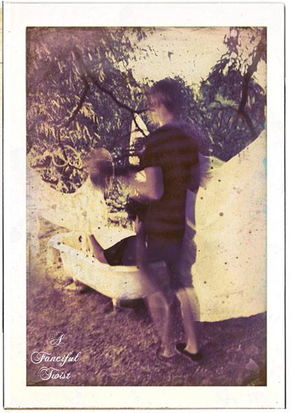 Oh Fanciful One, can you teach me how to use my Photoshop (CS3), PLEASE! PlEasE! PleASE! Your photos are to die for with all their beautiful dreaminess about them. And the gypsy’s… well the gypsy’s…bathing in the outdoor tub. Silly gypsy boys :)! Did they bring home your treasures, but leave with much more? Where are they off to? Will they come to my door? Well, maybe not, but did they leave a trail of film for us to explore?