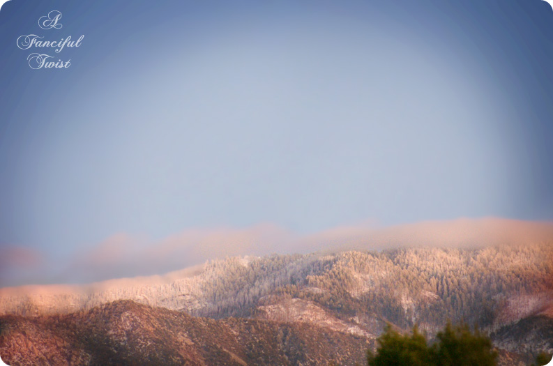 Wow! Are you getting snow? That is such a lovely picture of the mountains. Enjoy your hot chocolate and treats … and especially the precious times with your loved ones this holiday season. -kandes-