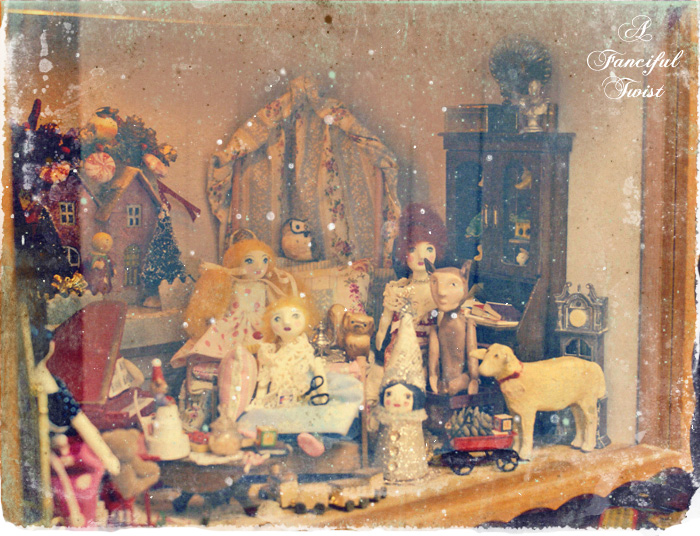 I love the little red piano in the photo along with all the rest of the little dollies and goodies displayed there.