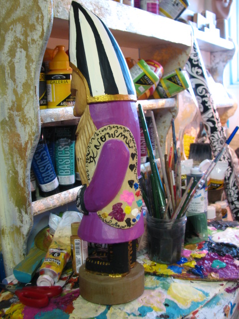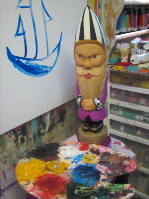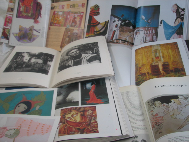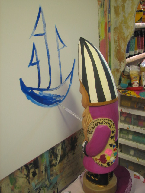 I am having a lovely day, drawing, painting and doing research. My kind of research is quite dreamy. Delving into all sorts of art books & magazines (Somerset Studio winter 2007 top left in photograph). Knowme is being creative too, painting his boat…