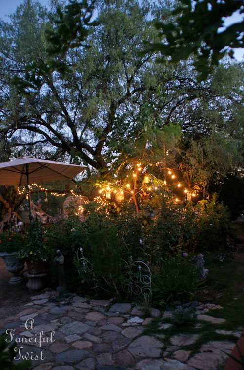 I relate to trying to remember how everything was displayed if a vignette is ever broken down. I have tons of antique porcelain too and am going to try stacking a little more so I can get more of it out. Lived in Phoenix for years so can relate to the heat issue. I have to admit I totally hated the climate except for about four months a year so my heart goes out to you, but you do seem to make the best of it. Love your lighted night garden!