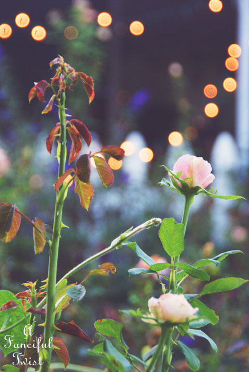 Bags on peaches, a good thing. I keep a pile of rocks and throw them at the squirrels and raccoons. I am not a very good aim, but they do run away. Watching my grapes, figs, and plums diligently. Your fairy lights remind me I must go to the store and buy more while they are on sale. Happy Summer Daze.