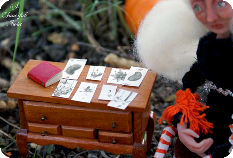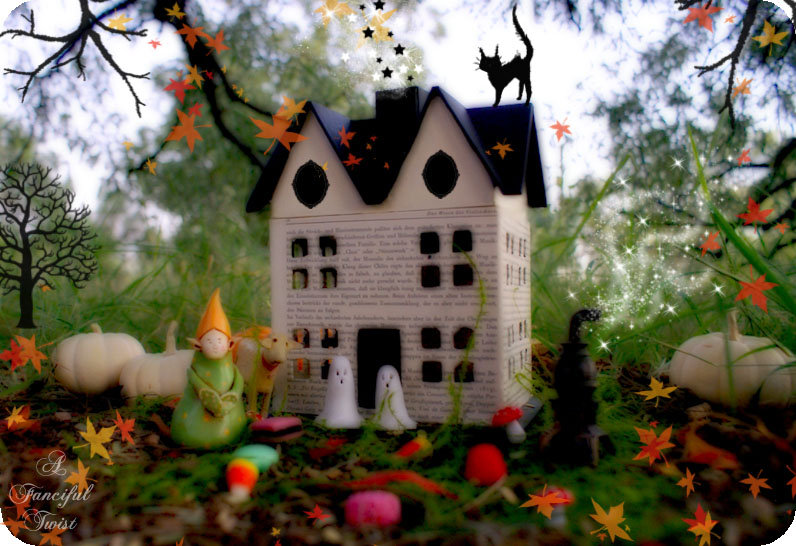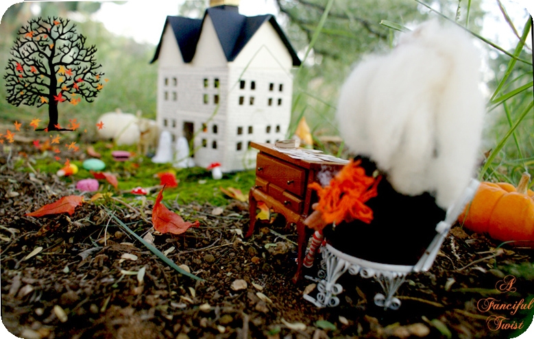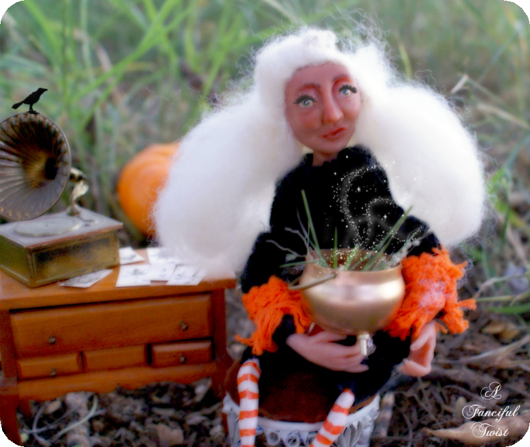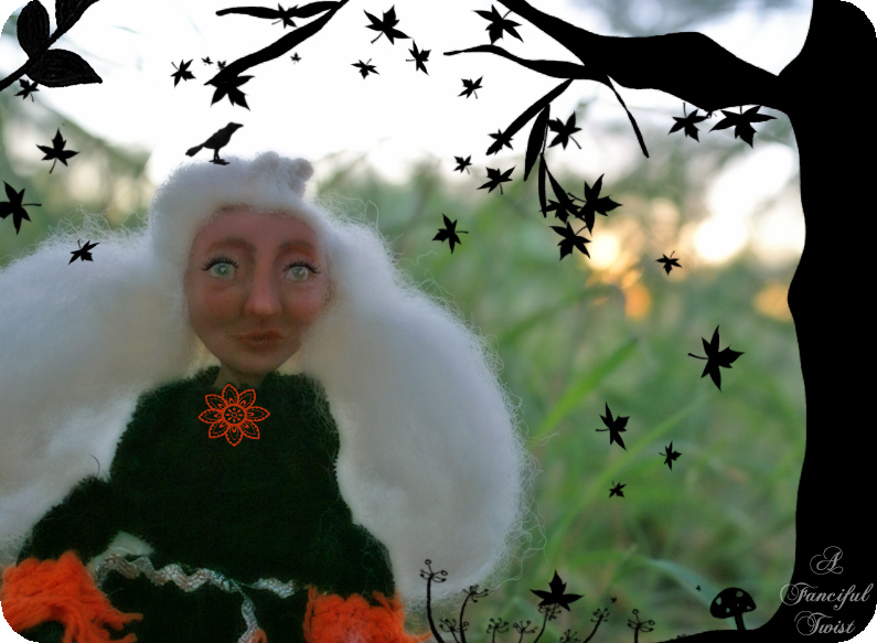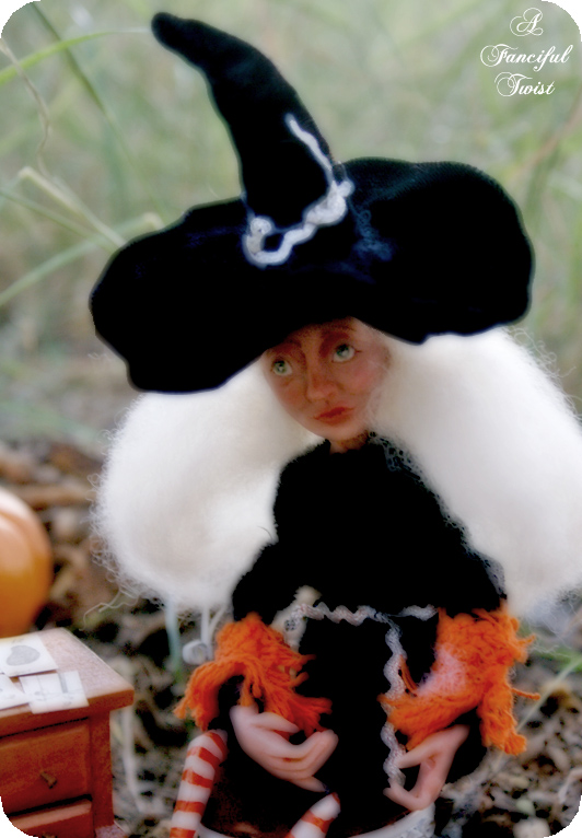 The little Autumn town I brought to life for this story, has a different twist. You see, there was this really nice witch (made by an outrageoulsy talented sweet friend – Laura of Rhinestone Armadillo – who is kindred to the core, and quite lovely to boot!!).