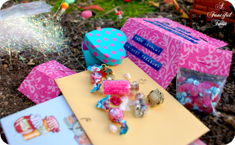 I also have to give a super special thank you to a real peachy girl, who just joined the blogging community not too long ago. She and I have been friendly since way back, before she started a blog, when it was a mere thought. Her name is Jennifer, and she sent me the most amazing surprise package. Seeing how she is the Trinket Treasure Queen and all 😉 Thank you Miss J!!
