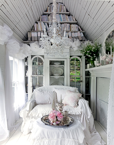 I have so many decorating magazines I am going to run out of room….I’ve been in nest mode and can’t get enough. Love that wee cabin and all the inexpensive ways she brought it to life. I so can’t wait to move my studio to garagpalooza….some day!