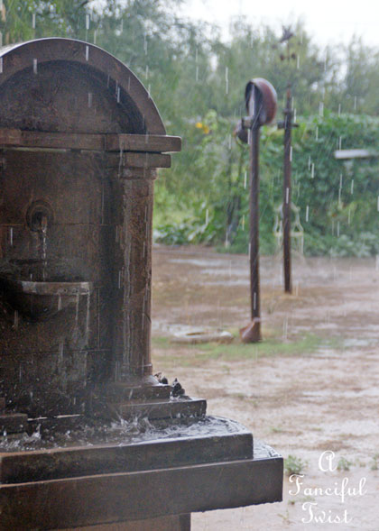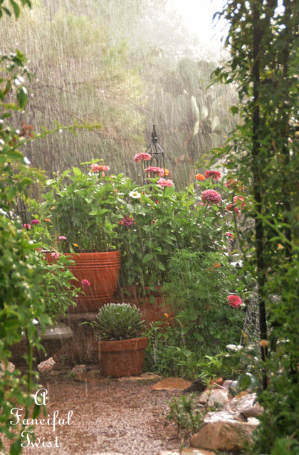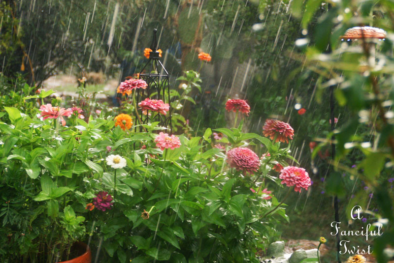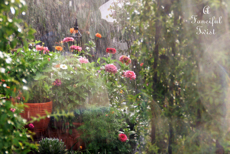 Oh! Thank you for sharing your rain photos. The Monday my sister and I were having a craft day at my house with her kiddos, it RAINED TOO! In fact, my sister went outside on our residential street where her SUV was parked and she twirled around in the street in the rain…she looked across the street and there was a grumpy old man in his front yard staring at her! Ha! She came back inside my house and laughed, and said ‘Oh! Well’ If the old goat thinks I’m crazy to dance and twirl in the rain, so what!!! It was a rare day, and I left our kitchen door open to listen to the rain, and the thunder. It was so very magical! There is nothing like a rain storm on a hot summer day! I felt like Time stood still and shared a moment of bliss with us fleeting human beings. It’s days like these that make the most amazing memories.