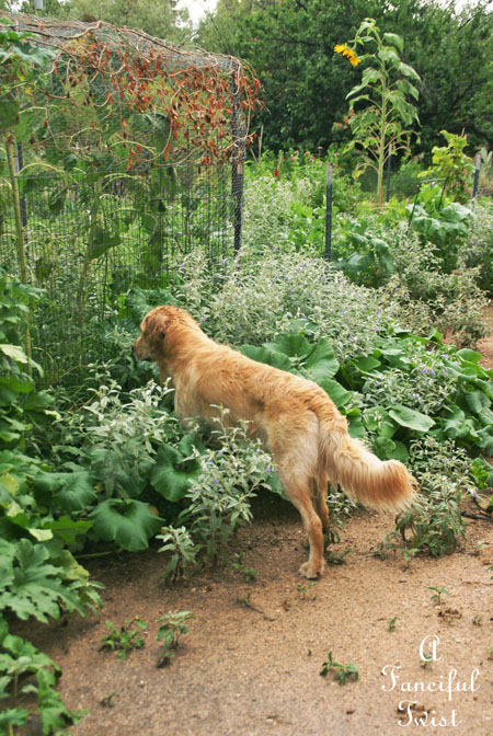 And then, you take one with you on a walk to see what your growing things look like after the rain.
