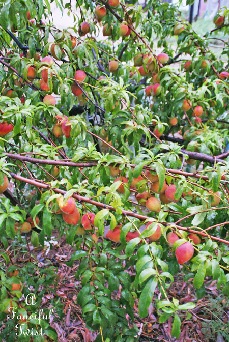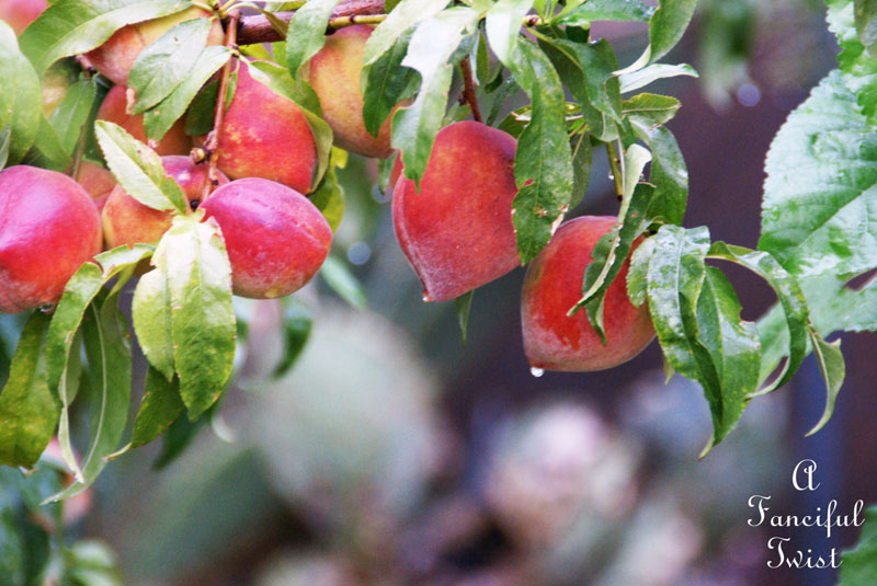 The peaches look so good. Everything is so green. Glad you got your rain.