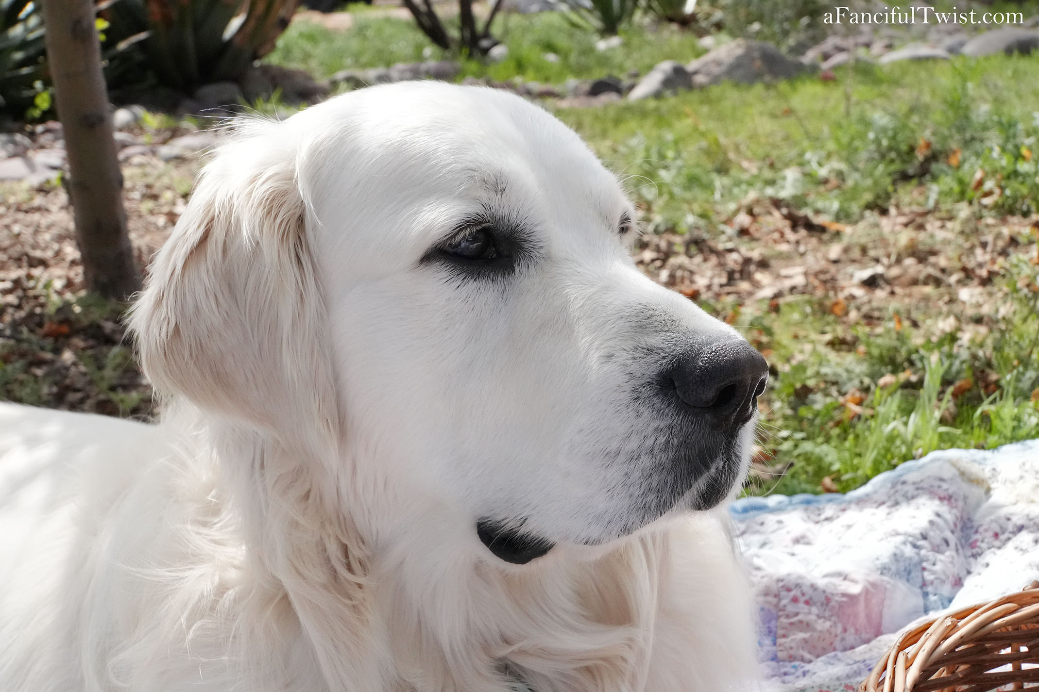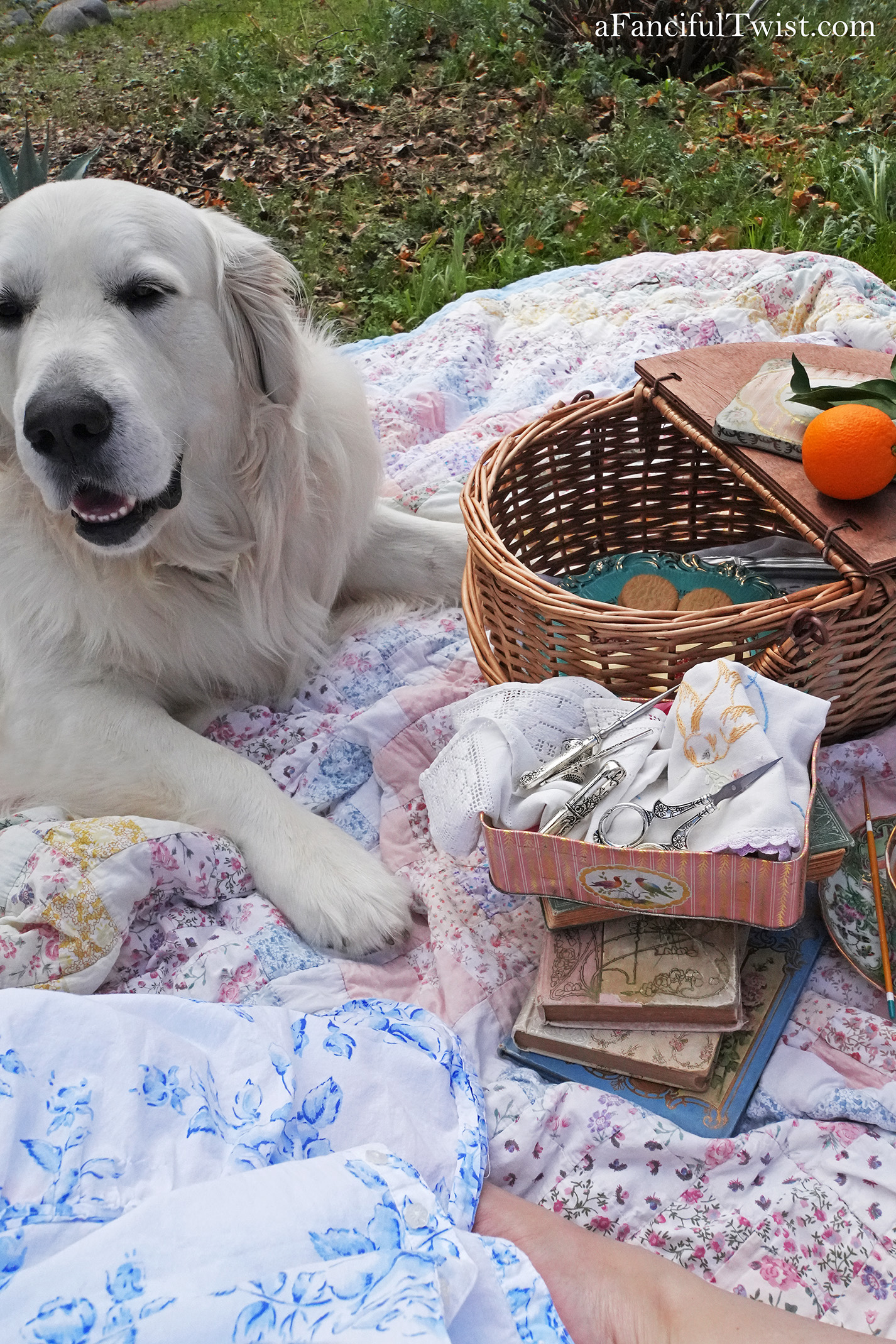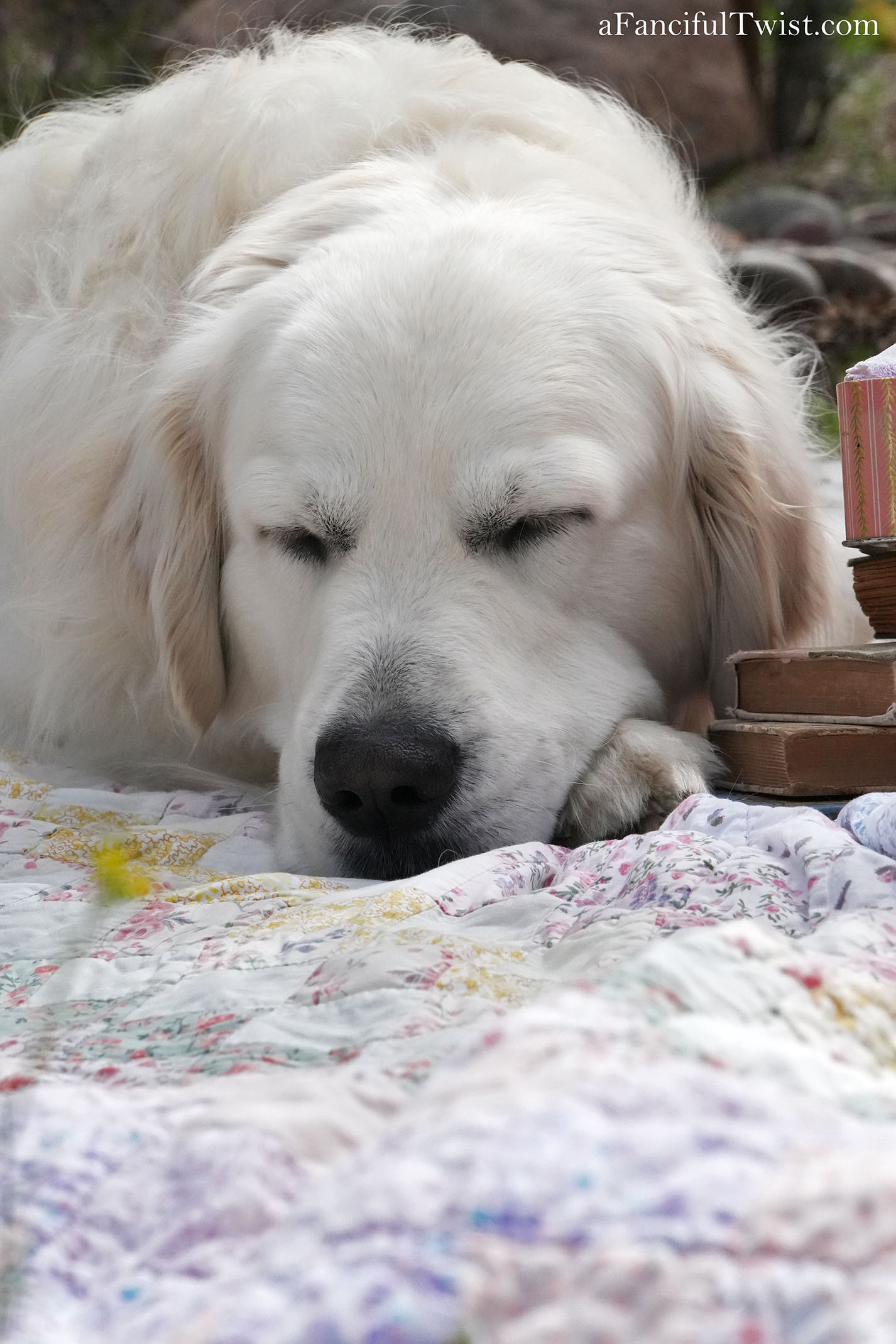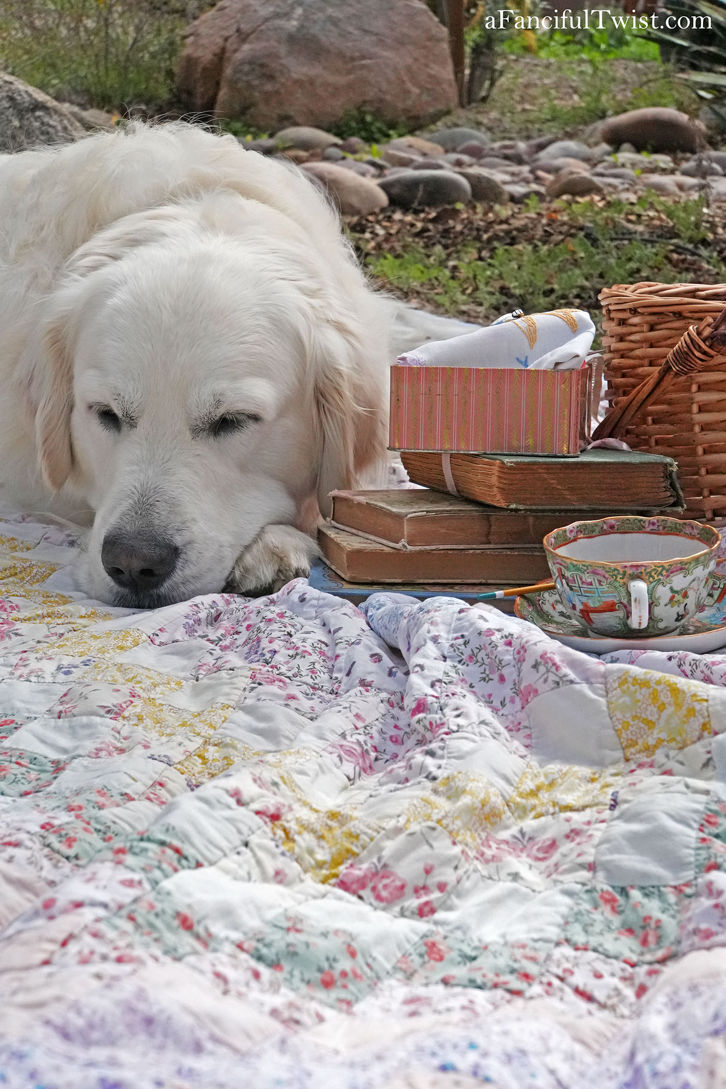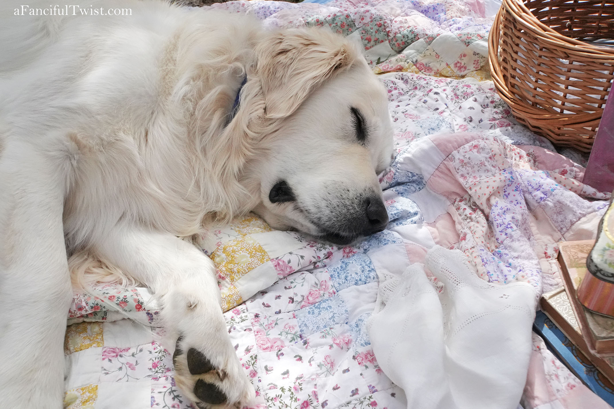 Teddy adored the quilt and rolled around, stopping to nap and slowly opening one eye to watch a huge hawk fly right above us.