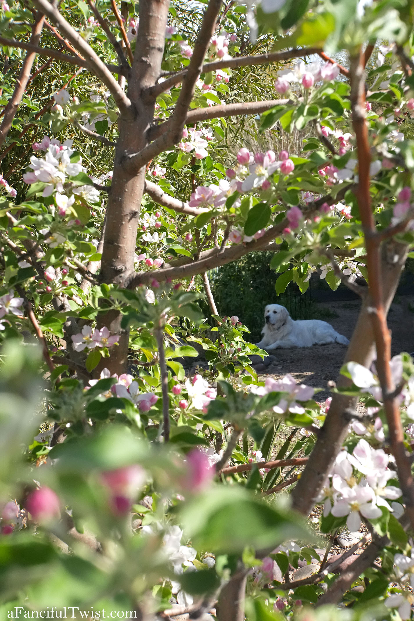 What’s not to like with a handsome white knight picnicking with you in the middle of blooming apples blossoms. Your pictures are wonderful. So beautiful!