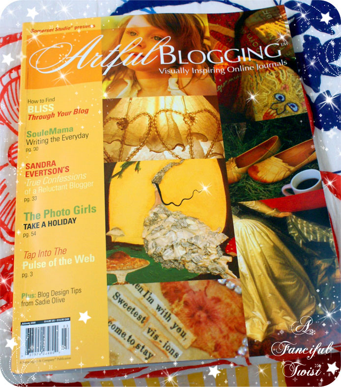 This is the Autumn 2008 issue of Artful Blogging (which hits the stands on August 1st).  I added a few magic sprinkles ;)  Can you spot one of my little children hidden in there??