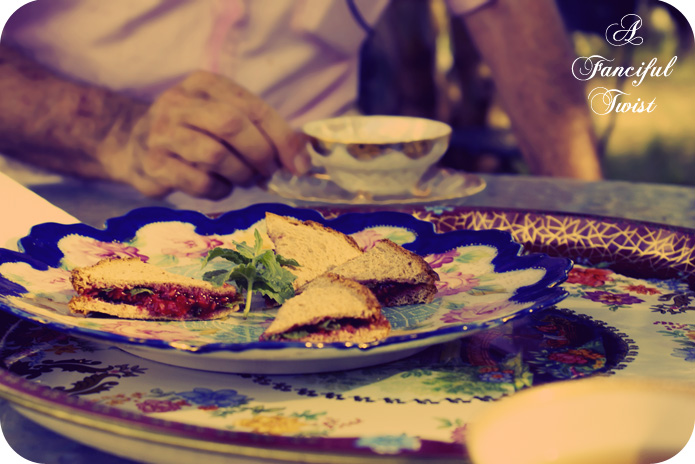 Raspberry Jam, fresh raspberries and fresh cut mint sandwiches…