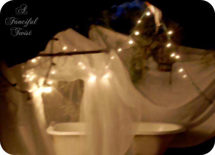 Garden bath by twinkling lights…