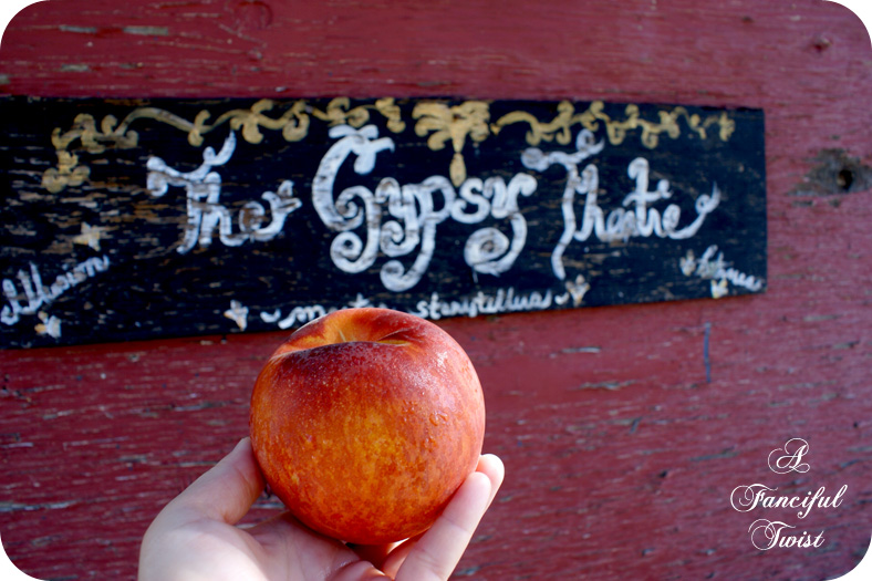 Under such skies, huge peaches found their way to the Gypsy Theater…