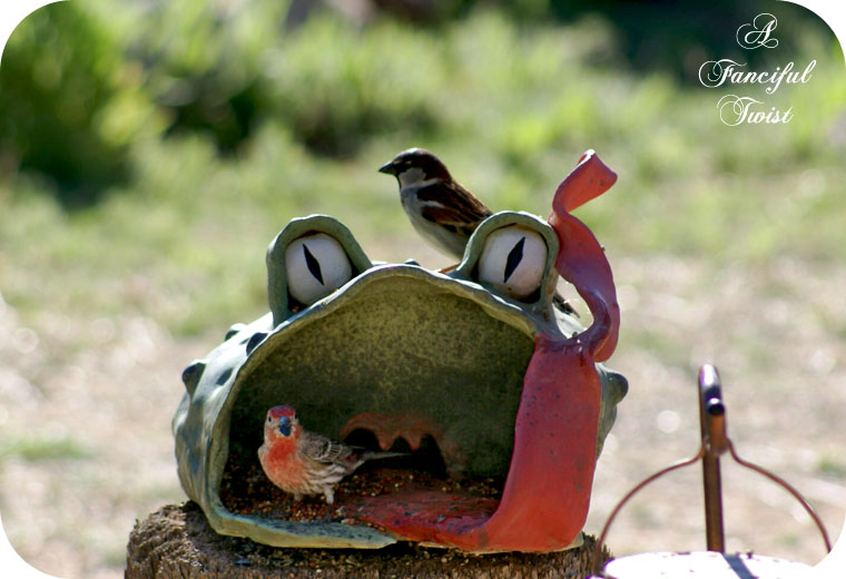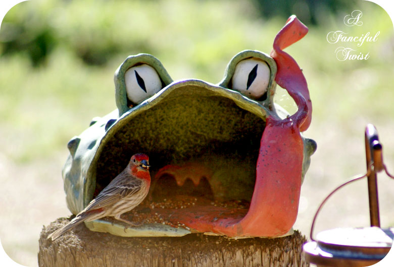 your frog bird feeder is delightful…of course:)