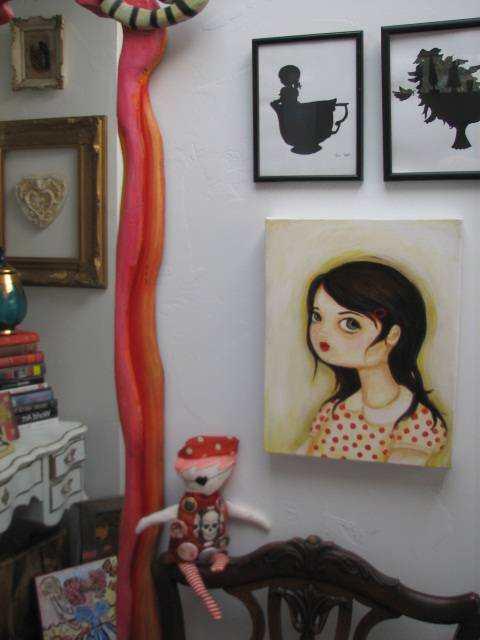 This is all I can muster up for now. I think I might find myself under the covers for a couple of days or at least until I feel better. Also, very important, I can not find my Black Apple pirate girl anywhere. See her sitting on the chair ledge??? Now she is gone.