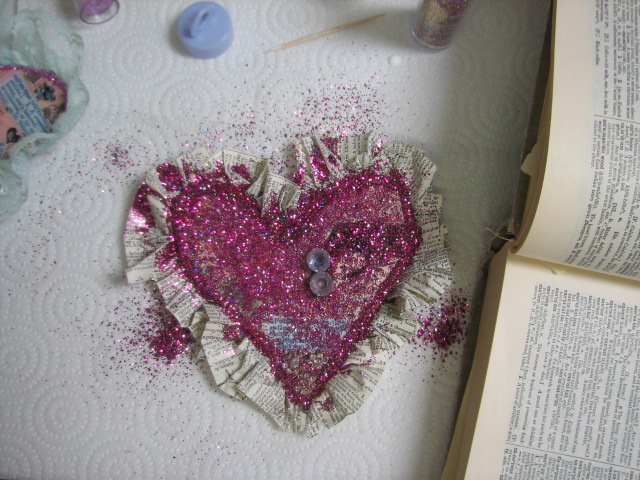 I am so sorry you are woozy,today is my last day off before I become a full-time theatre vampire,so I’ll be scarce for a bit too.Love the vals with glitter and granny goodies!