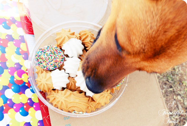 Fancy puppy cookies (amongst oodles of other treats), yummmy! Matty chose his…