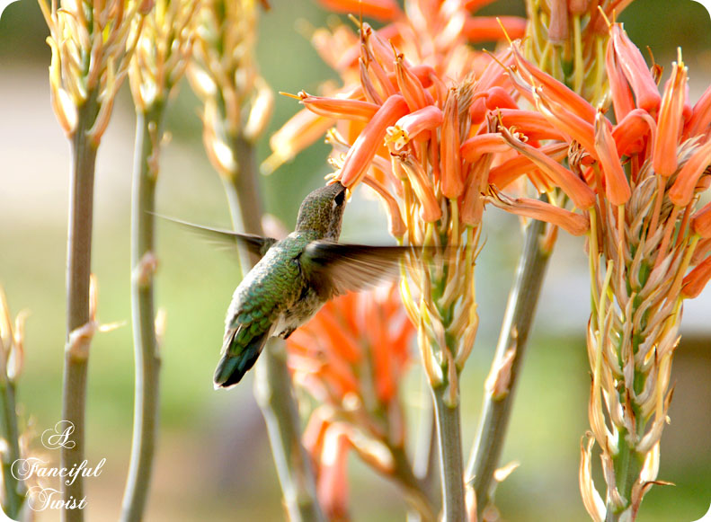 But wait, I left out the most amazing part. There are a handful of hummingbirds living in my garden. Usually there are 3 – 4, but this year there are more.
