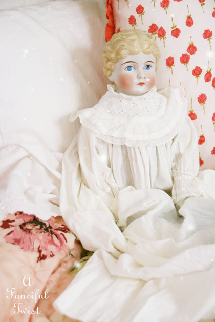 Hello Miss Vanessa….. and to your sweet and lovely new addition Miss China doll!!! I am looking forward to her future tales living in your Fanciful world! What a delight to have her arrive. I too love my collected and treasured dollies. Let the dreams commence<3