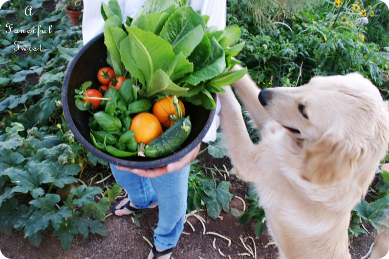 Oh what amazing deliciousness, Vanessa! I love your enclosed veggie garden. Such a great idea – will have to pose the idea to my hubby. 🙂 I love salads, too. We have already harvested all of our lettuce, which was wonderful for fresh salads. Our pups love begging for strange treats, too – like almonds and cherries. Silly sweeties. 🙂 Enjoy all your yummy garden goodness!