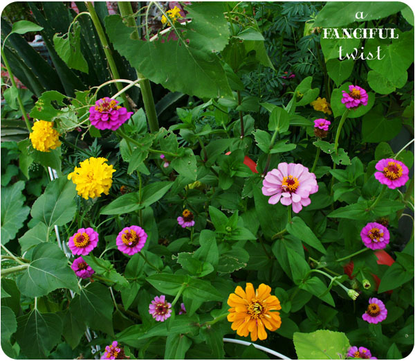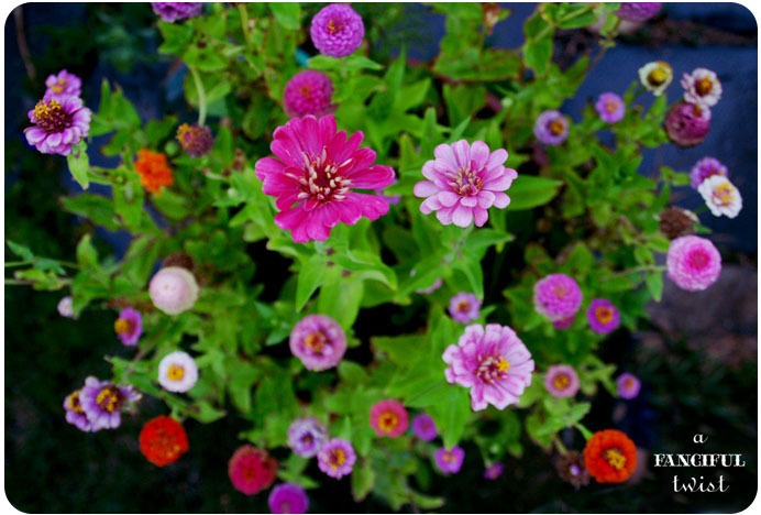 The flowers that do the best for me, year after year are cosmos, marigolds, roses, hibiscus, black eyed susans, coreopsis, verbena, snapdragons, sunflowers, yarrow, morning glories, nasturtium, dahlias, a handful of assorted wild flowers, and last but not least, the ever kind zinnia.
