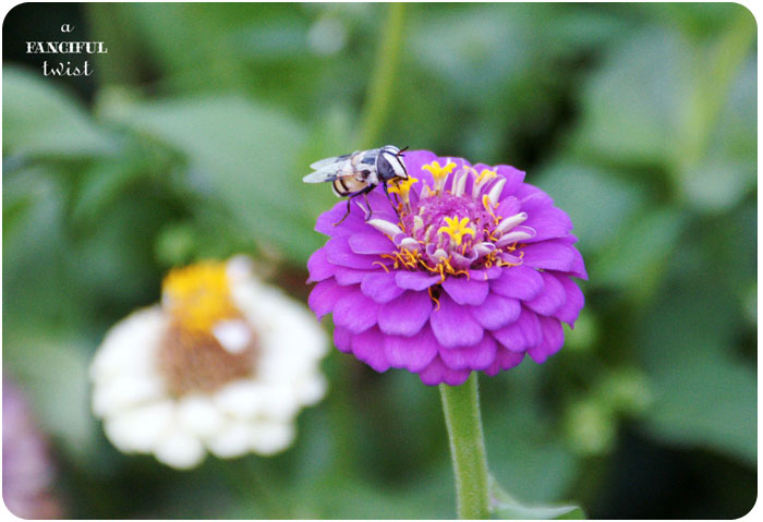 The bees, hummingbirds and butterflies stop by for rests on the zinnias all day…