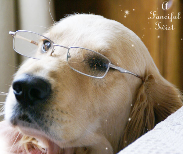 Miles is such a good furry one sporting his thinking glasses, cutie-pie dog dog.