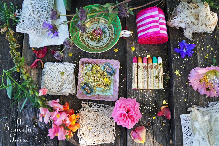 Sparkles, art supplies, tea cups and joy.