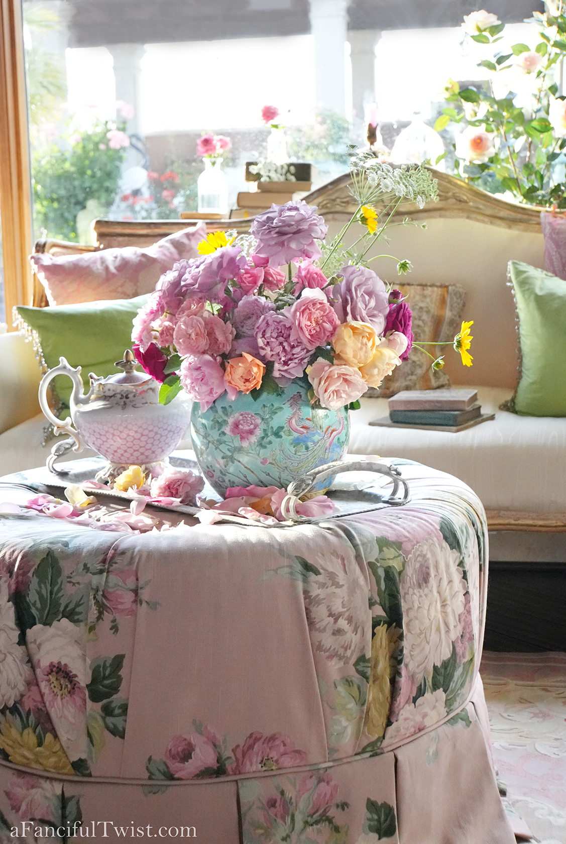 And so, I sit in the chaise across from the floral poof ottoman, dogs under my feet, and snap these photos just for you.