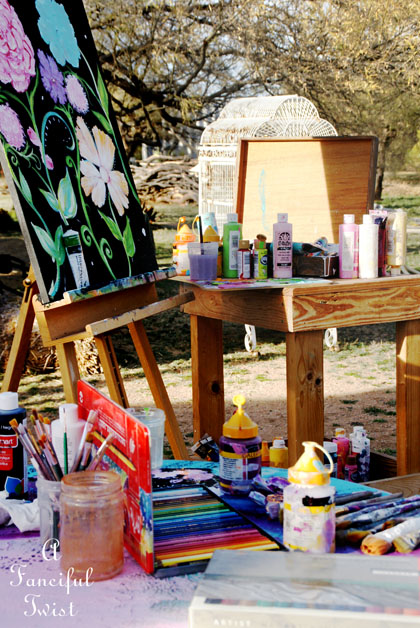 I love the flower painting! And your “art cart” so reminds me of college and the art studio. fun times. Of course, we didn’t have a garden to look at all day. =)