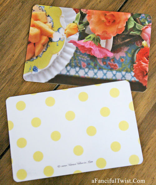 Beautiful cards Vanessa! Love the yellow polka dots on the back, that is sooo cute! I always use your beautiful cards when I send things to people, so many lovely whimsical options!