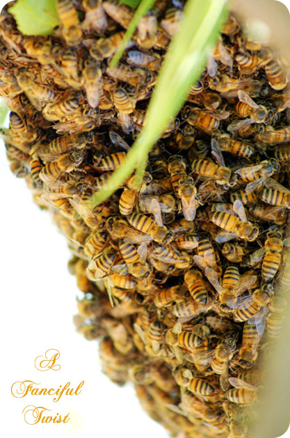 Well Vanessa….when you told me yesterday that you had been out amoungst the bees, I had NO idea just how MANY bees you were playing with!! Wow….how lovely and scary all at once. I adore Bees and what they do for the world!! But at the same time, I am leary of their stings.