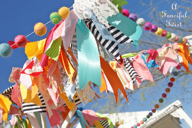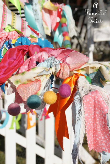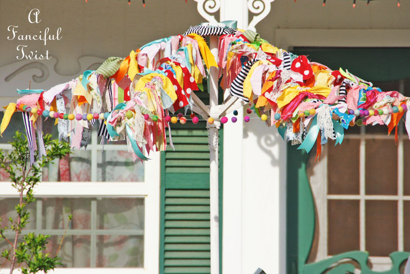 I, too, have made fabric strip garlands at my house, but they are inside. I have one over a window and one over the entryway from dining room to living room. I have considered making one for the front porch, too.