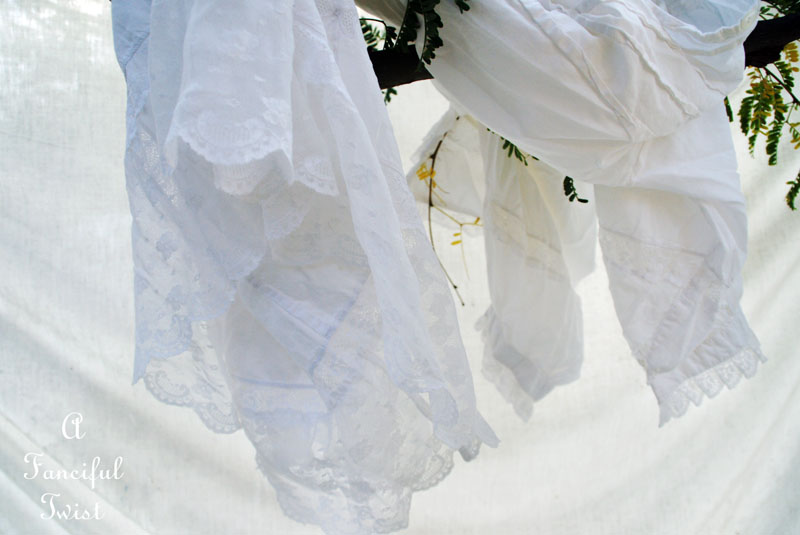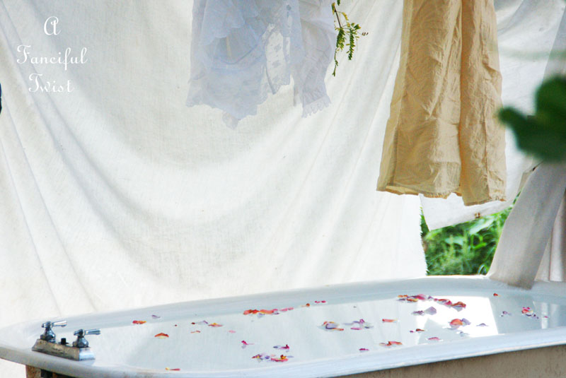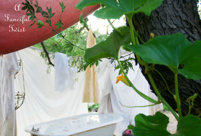 Your pictures make me want to go out and find a tub, drag it up on the hill behind the house and hang all kinds of billowing linens all around. Ahhhhh, someday.