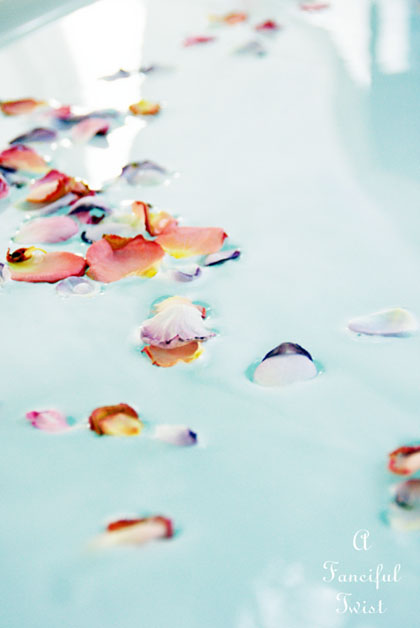 Outdoor bathing is a dream for me, but one I do hope to do someday. It is beautiful, this tub of yours with rose petal floating about. Just beautiful I say!