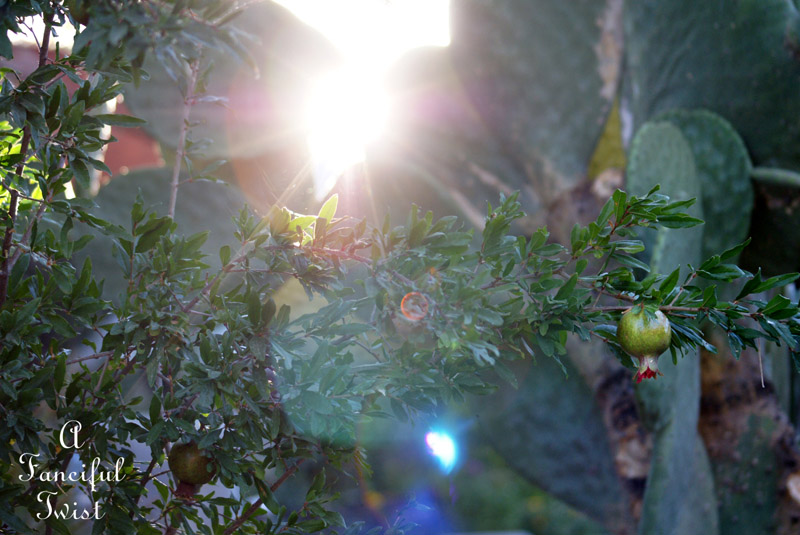 Pomegranates grow as droopy cacti plump up with rain water.
